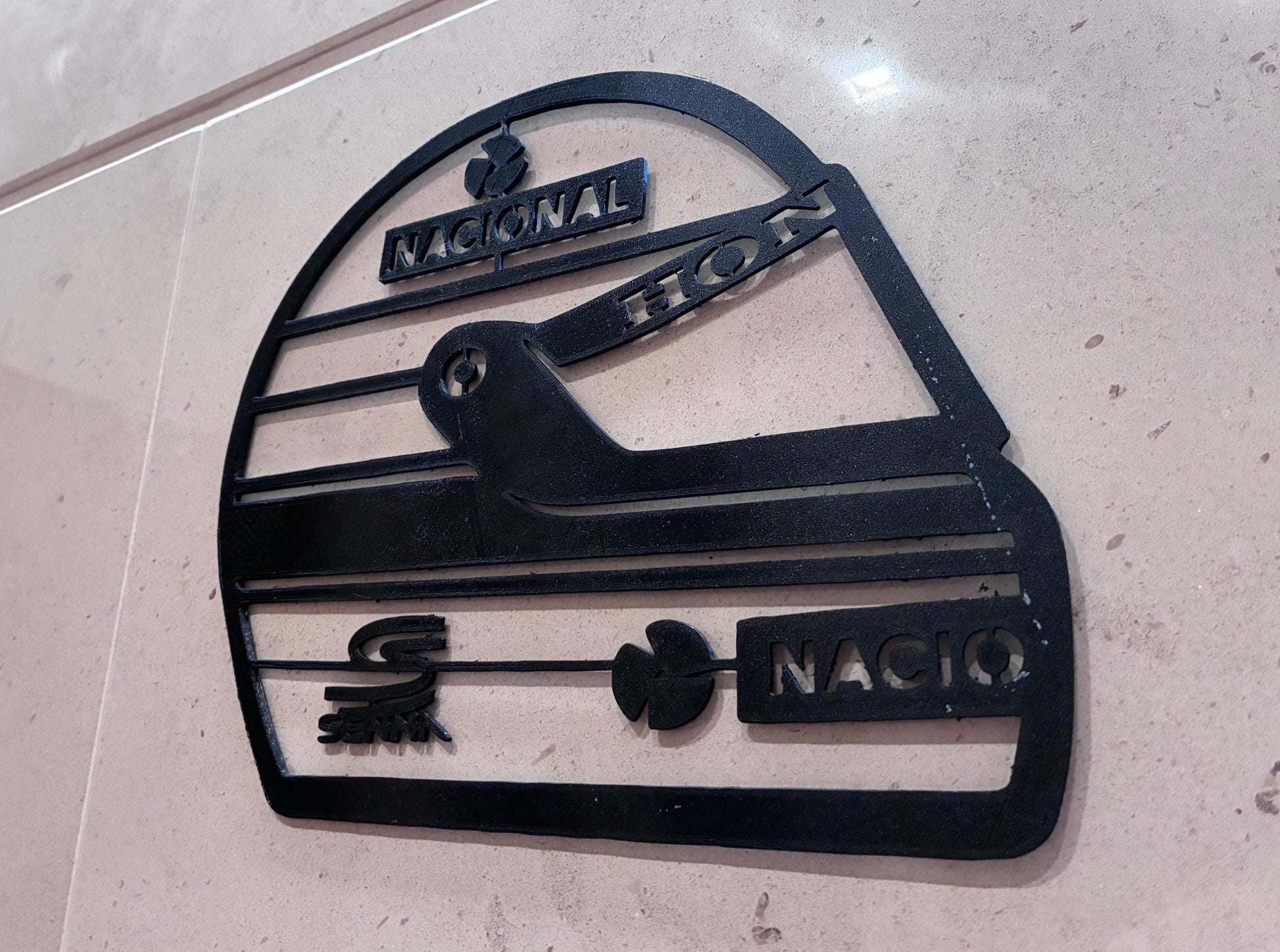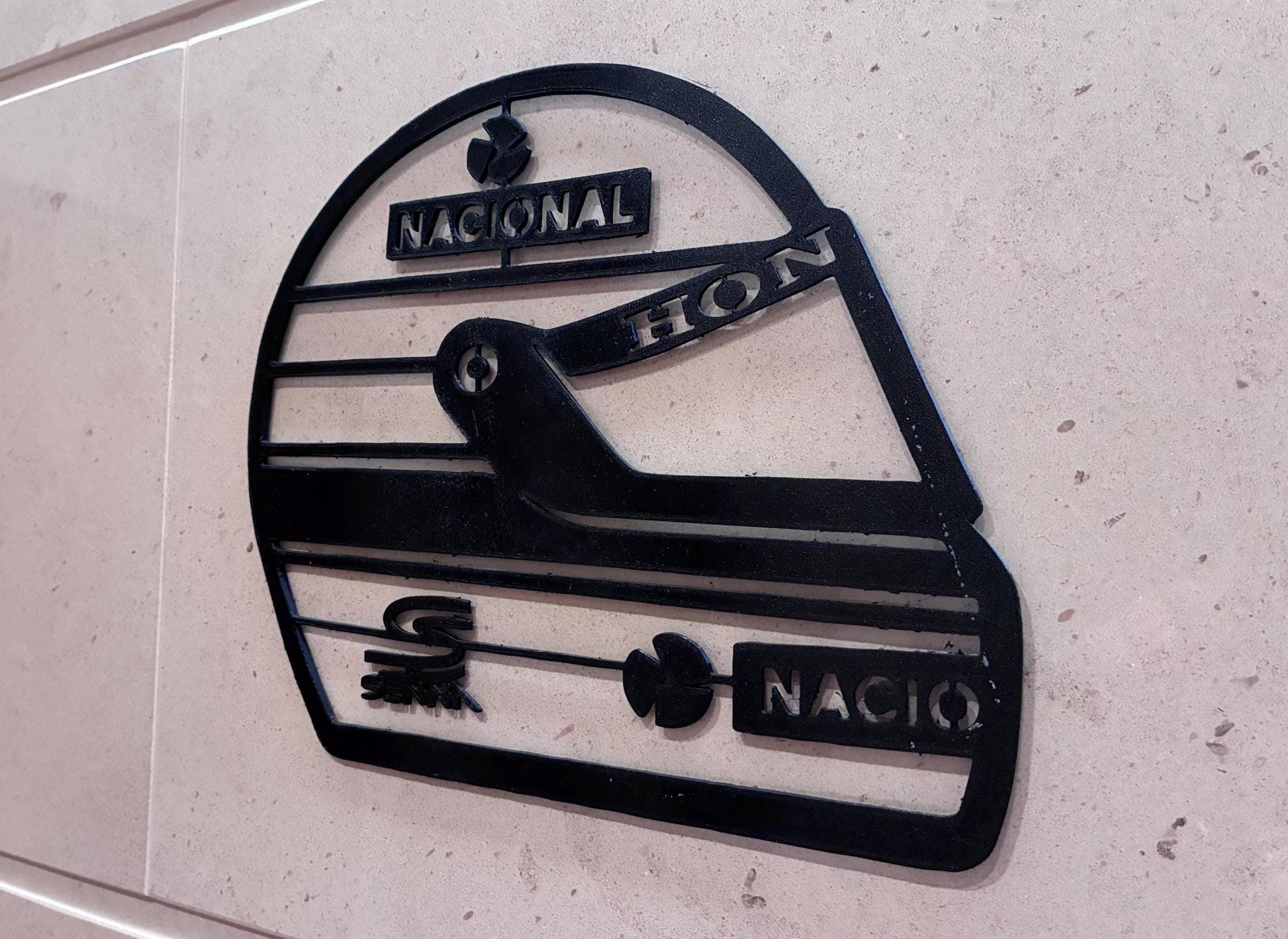 F1 Helmet profile inspired by Ayrton Senna, 3D printed for home decor.